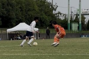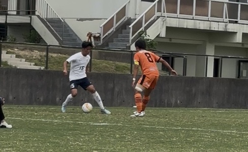 後半は流れに乗ります。流れるようなパスワークや個人技からゴールに迫り、63分には右サイドから森一琉(人間健康学部2年)の個人技でシュートまで持って行きます。そして83分平山珠蓮(人間健康学部4年)がゴール近くのエリアでボールを受けると、自ら仕掛け追加点を挙げます。また試合終了間際にはキーパーのこぼれ球に反応した佐藤光(人間健康学部4年)がゴールを決めます。