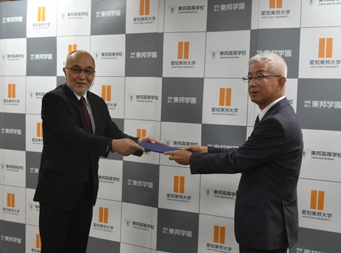 この後、河島理事が鵜飼学長に協定書を手渡し、締結式を終えました。