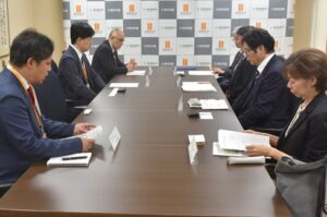 続いて意見交換に移り、さまざまなインターンシップなどにも話が及びました。京都府では、夏場のアルバイト時期の有償型インターンシップなどに財政的支援を行っているそうです。また京都の企業を大学に招いてのセミナーなども仲介できるという話も出ました。