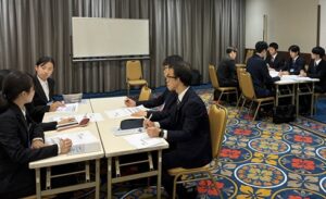 最初にプログラム全般に関する説明があった後、午前は参加者全員が参加して模擬面接による自己PRが行われました。計4回の実践では講師によるアドバイスがあり、学生も試行錯誤しながら取り組んでいました。同時に模擬選考会も行われ、本番さながらの真剣さで面接に挑んでいました。