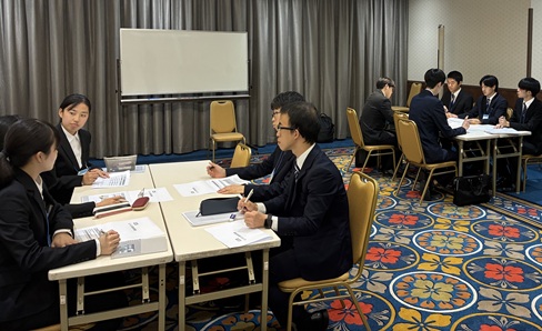 午後は模擬会社説明会が実施されました。大切なポイントをフィードバックしながら本番を想定して取り組んでいました。最後に、メンバーを組み替えながら、2回のグループディスカッションを行いました。初回は学生も口数が少なく遠慮がちでしたが、講師のアドバイスを受けた2回目は積極的な意見交換が見られ、参加学生の成長が伺えました。