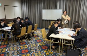 愛知東邦大学が3年生の就職支援の一環として行っている「じぶんブランディング-キャリア-」が10月5日、名古屋市中区にある名古屋クラウンホテルで開催されました。全学部で38人の学生が参加しました。また2年生5人が見学しました。