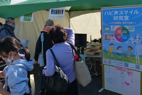 秋晴れの1116日、「第26回にっしん市民まつり」が日進市役所で開催され、教育学部の伊藤龍仁教授が主宰する「ハピ声スマイル研究室」のブースも出展しました。当日は100人を超える市民の皆さまに立ち寄っていただき、子どもから大人まで幅広い世代に研究室の取り組みを紹介する貴重な機会となりました。