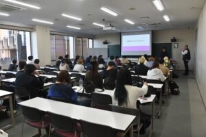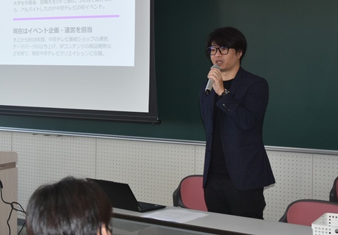 溜島さんは「中京テレビクリエイション」でエンターテイメントの世界で働いています。テーマパークの「名古屋アンパンマンこどもミュージアム&パーク」の立ち上げやタレントを招いての公演などに関わり、プロジェクトビジネスの専門家として、原教授が講師に招きました。