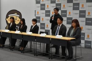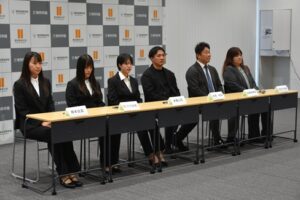 これに対し、米澤さんは「日々の努力を支えてくれた家族やチームメイトなどすべての人に感謝します」と緊張気味にお礼を述べました。また田代さんは「なでしこのレベルでプレーできるのか悩みましたが、今は自分の特長を生かし、チームに貢献したい」と決意を込めました。藤本さんは「社会人としても1人の選手としても信頼してもらえる選手として頑張ります。両親に活躍する姿をみてもらいたい」と意欲を見せました。