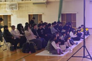 幼児を招いて一緒に「劇団うりんこ」の作品を観劇する教育学部の基礎演習が12月19日、S棟体育館で行われました。