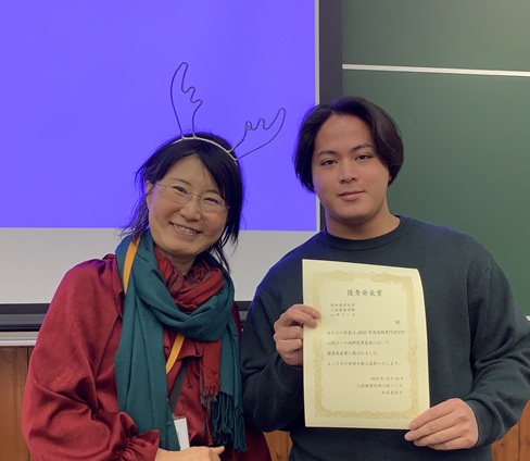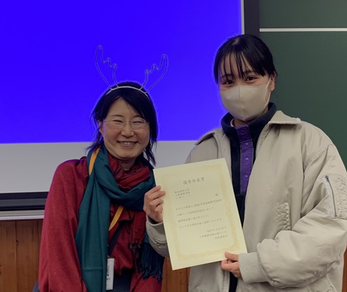 また優秀発表賞には、吉村ゼミの北川ケネットさんの「2D:4D比が低い人の性格特性と睡眠の関連」、松尾ゼミの山口琴実さんの「SNS利用特性と孤独感の関連性について」の2件が選ばれました。いずれも興味深いテーマについて、最後まで諦めずに解析を進める姿勢が評価されました。参加者らはこの結果をもとに、この後、卒論やゼミ論に仕上げます。