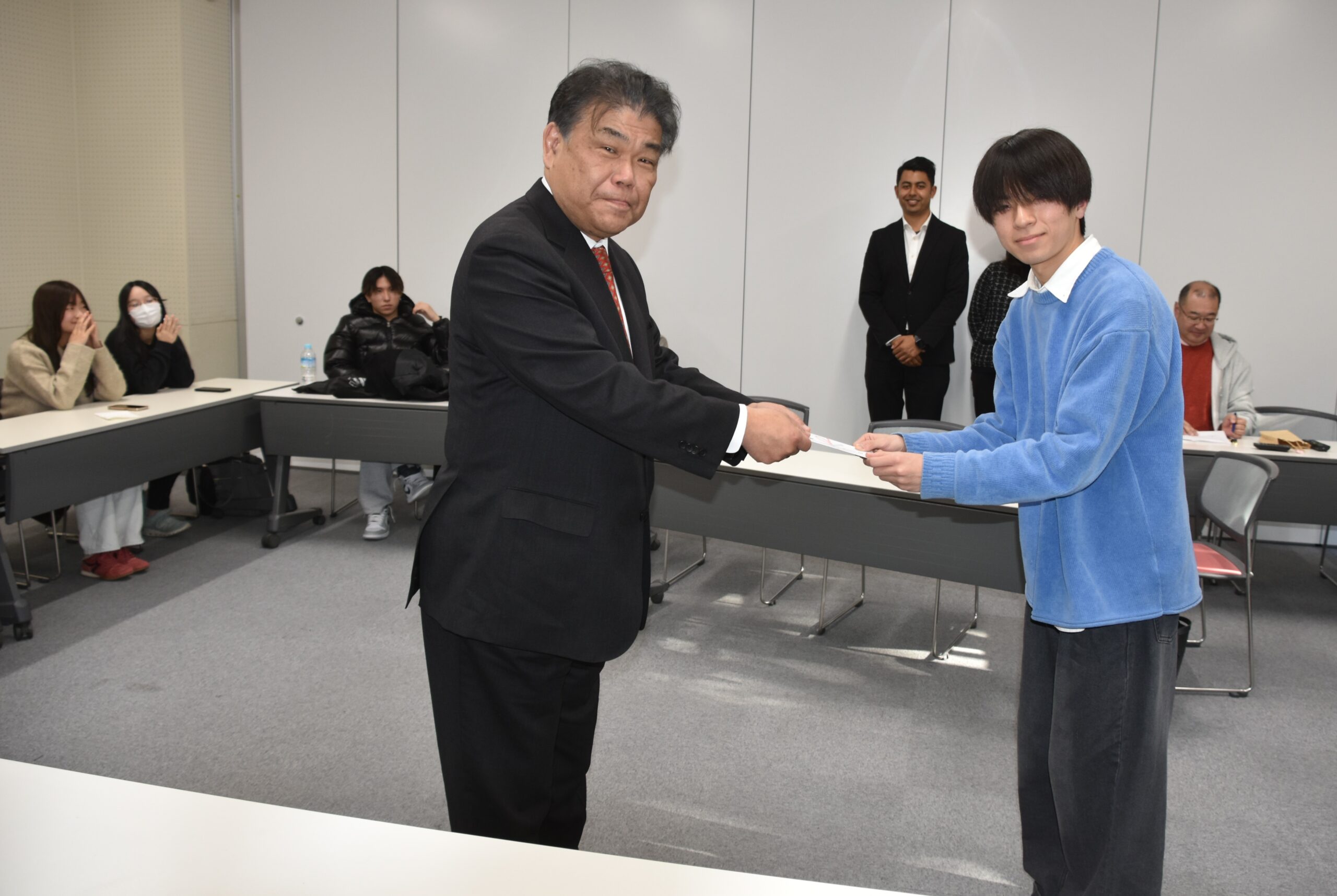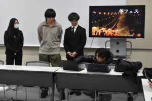 大賞を受賞したグループの上松楽さんは「現地には2回行ったし、調べなどで結構時間もかかりましたので報われた気がします」と笑顔を見せました。原教授は「本学には地域が教室というブランドメッセージがあります。学生が自分の住んでいる地域に関心を持ち、その街をブランディングするための提案に知恵を絞り、足を運び考えることは、今後の就活を前に良い経験なったと思います」と話しています。