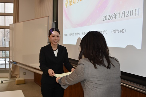 最後に挨拶に立った尚爾華学部長は「調査・分析・まとめは大変だったでしょう。卒業研究は書いて終わり、ではなく、これからの人生につながる経験になっ