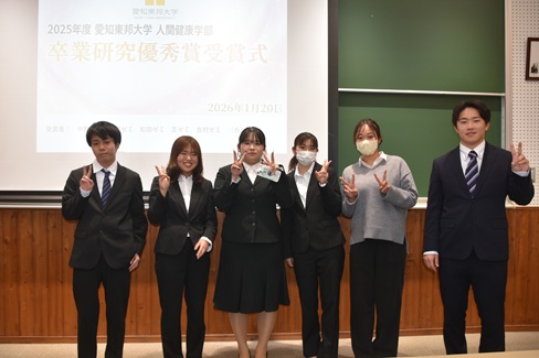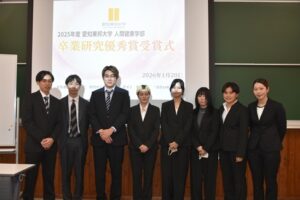 人間健康学部4年生の卒業研究発表会が1月20日に行われました。自ら選んだテーマに、今年度は14人(他に2年生が1人特別参加)が挑戦しました。