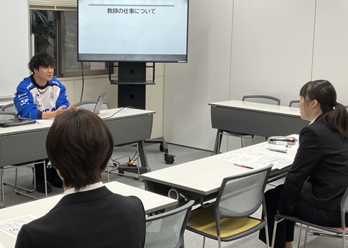 「今日のセミナーを通して、願書作成や面接練習など教員採用試験において必要な知識やスキルを身に付けることができました。卒業生の講習会では教育現場のリアルを聞くことができ、教育実習で活かせることも教えていただいたので、教育実習までしっかり準備をしていこうと思いました」