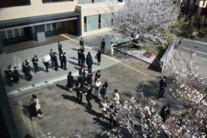 穏やかな春の日差しの中、平和公園の桜の花びらが零れ、風に舞うこの美しい日に、愛知東邦大学入学式を迎えることができますことを心から感謝いたします。やはり、入学式には桜が似合います 。