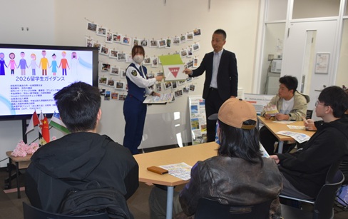 ガイダンスに参加していた許睿哲さん(経営学部4年)は「僕は編入して1年ですが、とても有意義な催し物でした。新入生にとっても、日本の暮らしに慣れるために、警察官からこんなに詳しいことを直接聞けるのはとても役に立つと思います」と話していました。