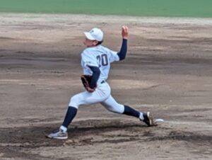 ゲーム中盤両チームとも無得点ですすみましたが、名大が7回裏に3得点を挙げて6対6の同点。これに対し愛知東邦大は、9回表9番南出玲丘人と2番小笠原晴人のヒットなどで二死二・三塁として、3番小川泰空のレフトへのラッキーな適時二塁打で2得点しました。守っては7回裏の途中からリリーフした比嘉湊が名大打線を抑えて2回戦も勝利しました。(硬式野球部主務 人間健康学部3年 袴田 好彦)