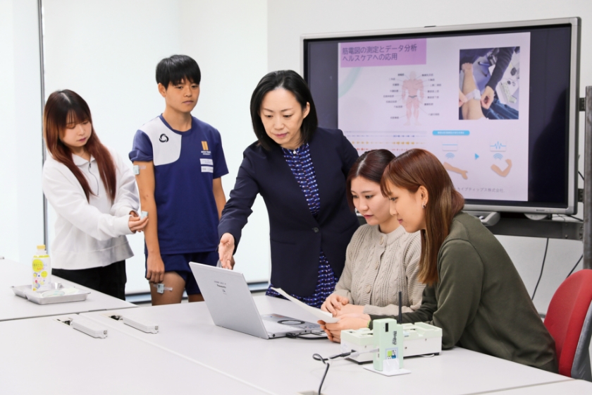 健康情報・データサイエンスの手法を学び、生体データの測定と分析法など実践的なスキルを身につけます。個々の健康課題の解決や社会全体のウェルビーイングの向上について学びます。